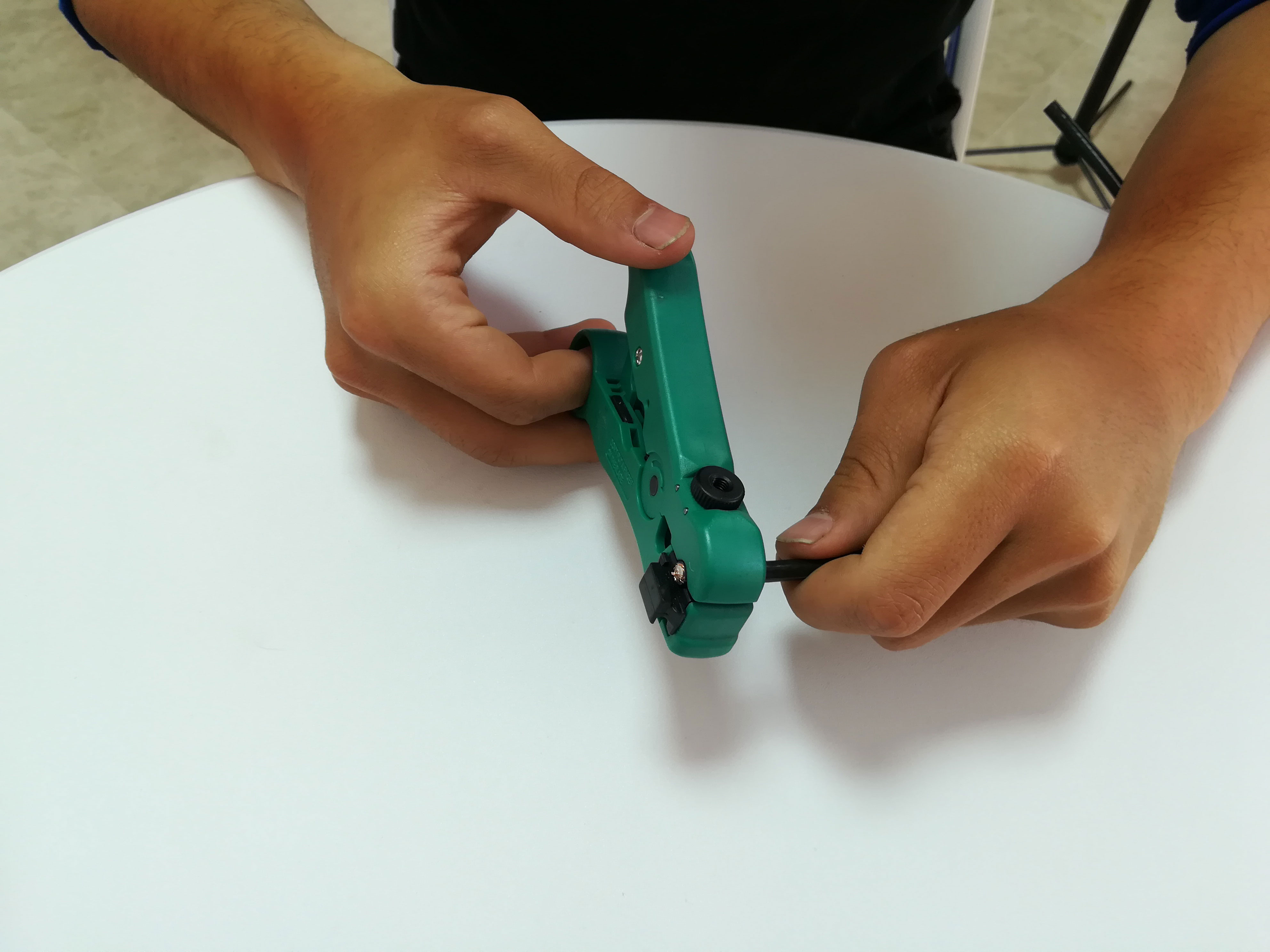 - در ابتدا روکش کابل کواکسیال را به وسیله استریپر جدا می کنیم .