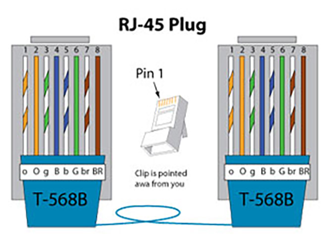 اول باید یه لپتاپ یا کامپیوتر داشته باشیم،دوم کابل برای اتصال به دوربین به صورت مستقیم ،کابل مورد استفاده در دوربین های آی پی رو بهش میگن زوج به هم تابیده Twisted Pairs [3] که باید به روش ۵۶۸B دو سرش سوکت RJ 45 زده بشه.
